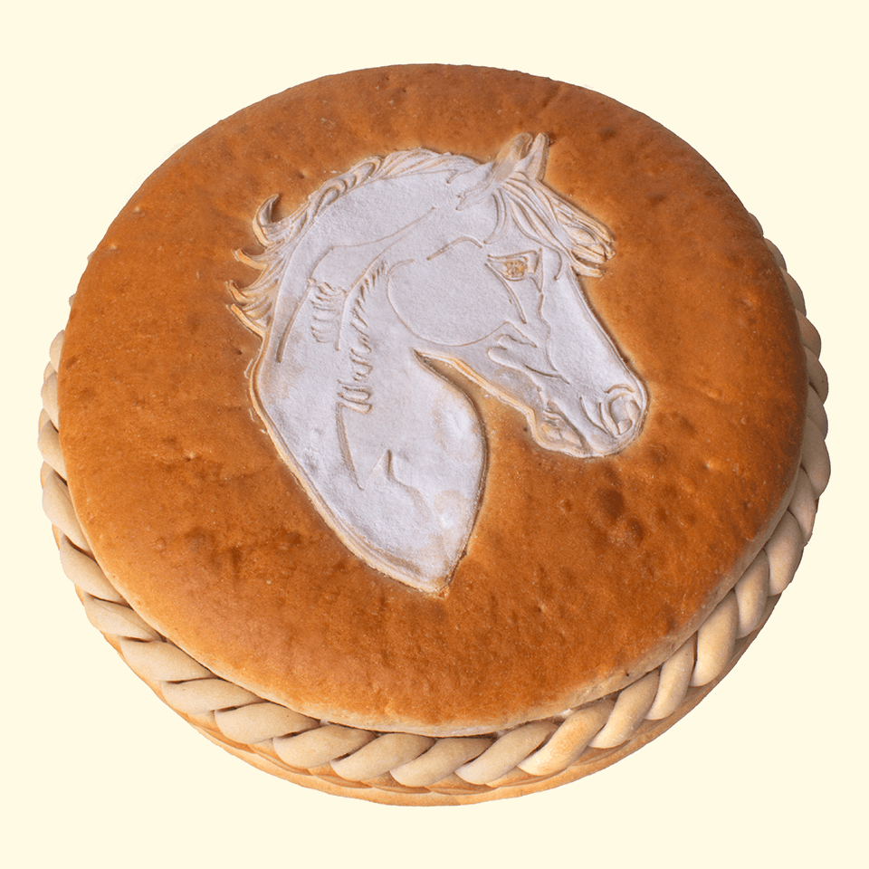 Погачата, изобразена на снимката, е от хлебно тесто. Изделията, изработени от козуначено тесто, са с по-тъмен цвят.